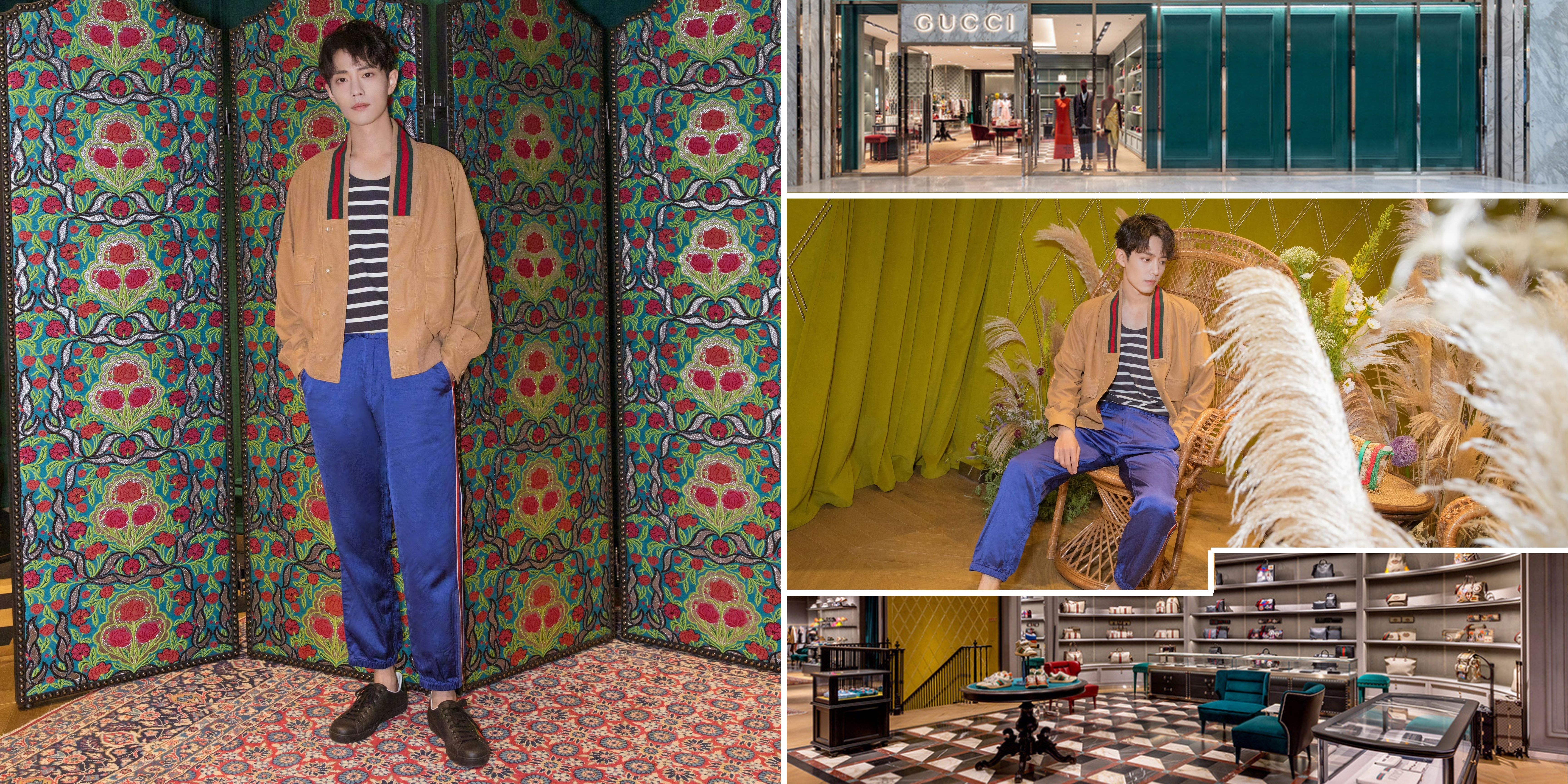 On June 27, 2019, Xiao Zhan attended GUCCI’s BeiJing store grand opening in Guomao Mall wearing Gucci’s Early Fall 2019 collection Look 52 — a Gucci light brown pilot jacket, a black-and-white striped T-shirt, blue trousers, paired with Gucci Ace sneakers and carrying a floral-print shopping bag, to celebrate the grand opening of this brand-new space that showcases the design aesthetics of Alessandro Michele. Explore the aesthetic world of Gucci.